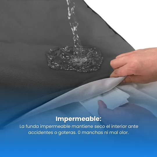 Simple: la funda impermeable se limpia con un paño húmedo o bajo agua corriente. No necesitás meter nada en la lavadora (cero pelos, cero detergentes especiales). En 10 minutos al sol queda lista.