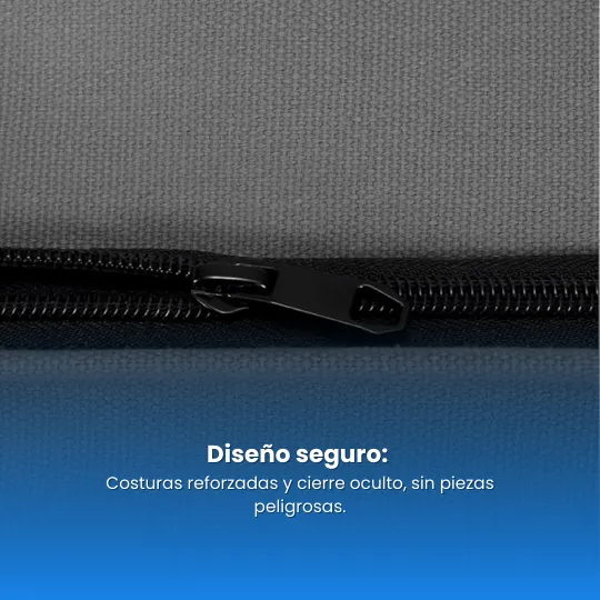 ComfyProof™ usa tejidos de PVC y Oxford de grado industrial con costuras reforzadas. Estos materiales resisten arañazos, mordidas y tirones fuertes. Además, viene con garantía por desgaste.